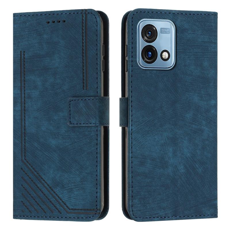For Motorola Moto G Stylus 4G 2023 Skin Feel Stripe Pattern Leather Phone Case with Lanyard(Blue)