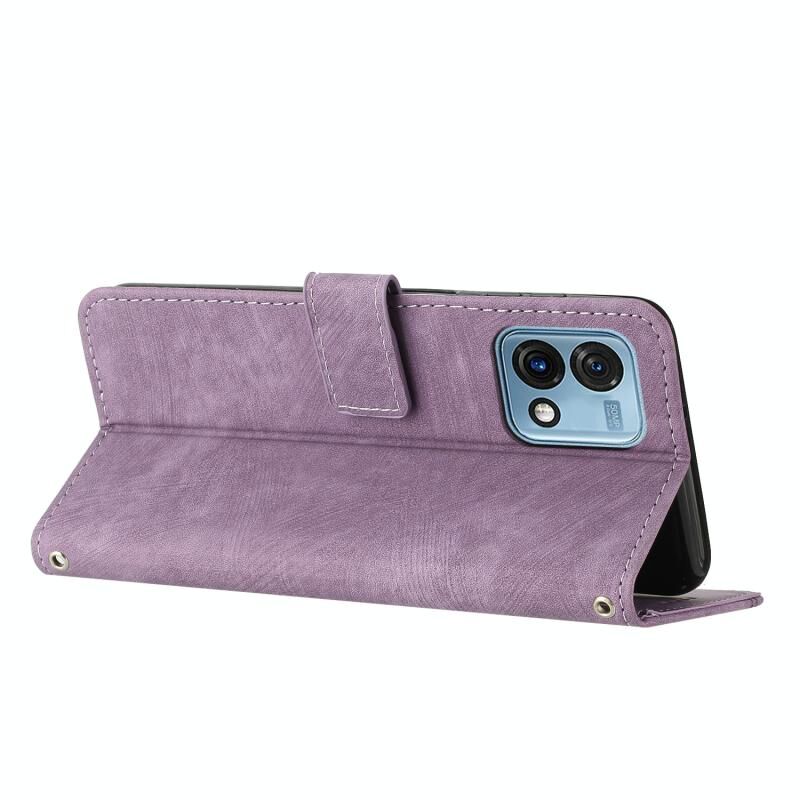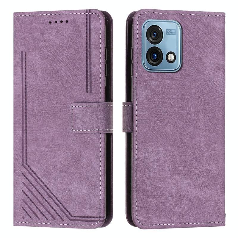 For Motorola Moto G Stylus 4G 2023 Skin Feel Stripe Pattern Leather Phone Case with Lanyard(Purple)