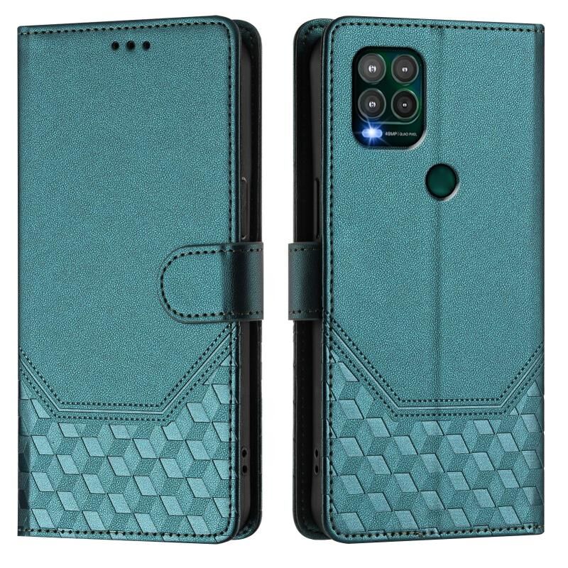 Για Motorola Moto G Stylus 5G 2021 Honeycomb ανάγλυφη RFID δερμάτινη θήκη τηλεφώνου (πράσινο παγώνι)