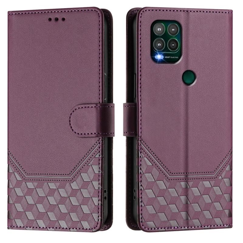 Για Motorola Moto G Stylus 5G 2021 Honeycomb ανάγλυφη RFID δερμάτινη θήκη τηλεφώνου (Violet)