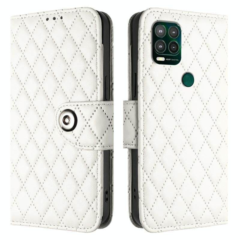 Για Motorola Moto G Stylus 5G 2021 Rhombic Texture Flip δερμάτινη θήκη τηλεφώνου με κορδόνι (Λευκό)