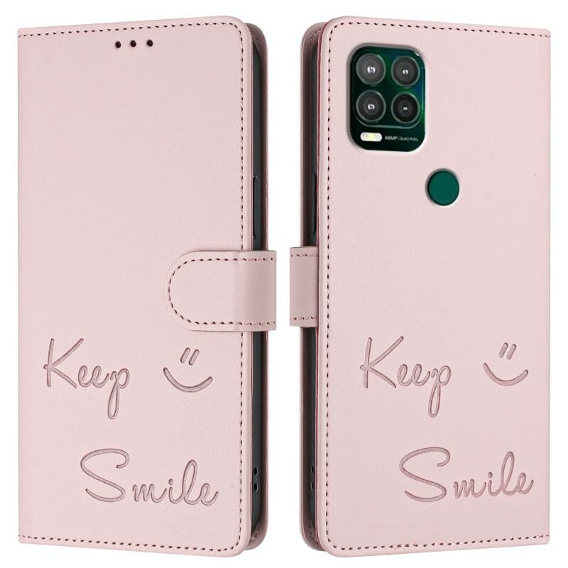 Θήκη τηλεφώνου από δέρμα με ανάγλυφο χαμόγελο και RFID για Motorola Moto G Stylus 5G 2021 (ρόζ)