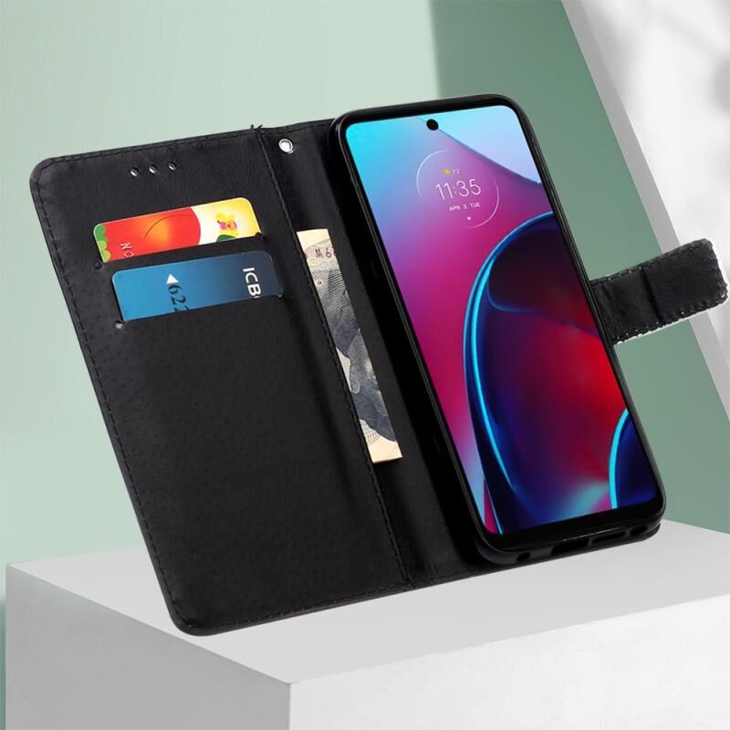 Θήκη τηλεφώνου από δέρμα με απλή ύφανση και πολύχρωμο σχέδιο για Motorola Moto G Stylus 5G 2022 (Ροζ)