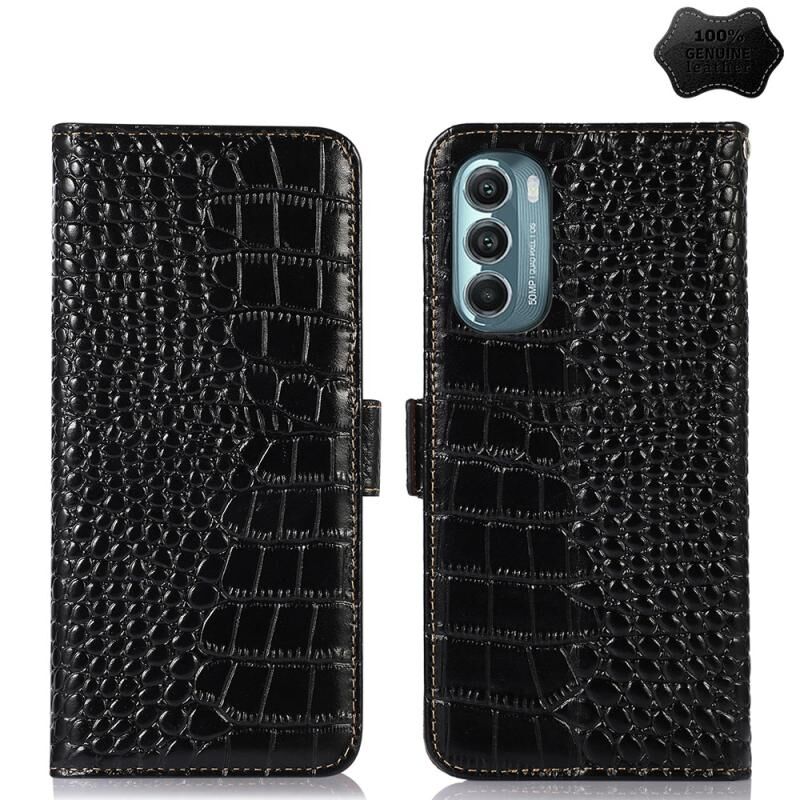 Θήκη τηλεφώνου από γνήσιο δέρμα αγελάδας Crocodile Top Layer για Motorola Moto G Stylus 5G 2022 (Μαύρο)
