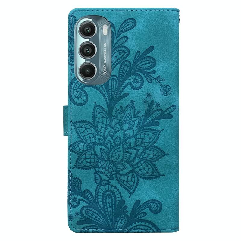 Θήκη τηλεφώνου από δερματίνη PU με μαγνητικό κούμπωμα και λουρί καρπού για Motorola Moto G Stylus 5G 2022, με δαντελένιο floral ανάγλυφο σχέδιο (Πράσινο)