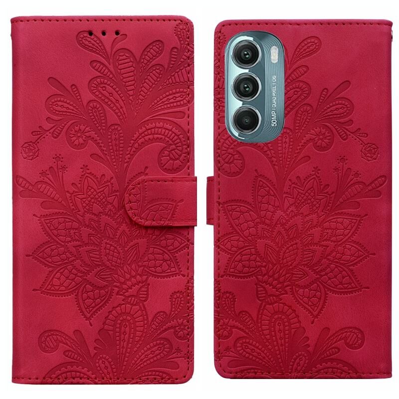 Θήκη τηλεφώνου από δερματίνη PU με μαγνητικό κούμπωμα και λουρί καρπού για Motorola Moto G Stylus 5G 2022, με δαντελένιο floral ανάγλυφο σχέδιο (Πράσινο)