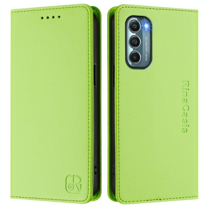 Θήκη τηλεφώνου δερμάτινη με μαγνητική απορρόφηση και διπλή πτύχωση για Motorola Moto G Stylus 5G 2022 RC01 (Πράσινο του γρασιδιού)