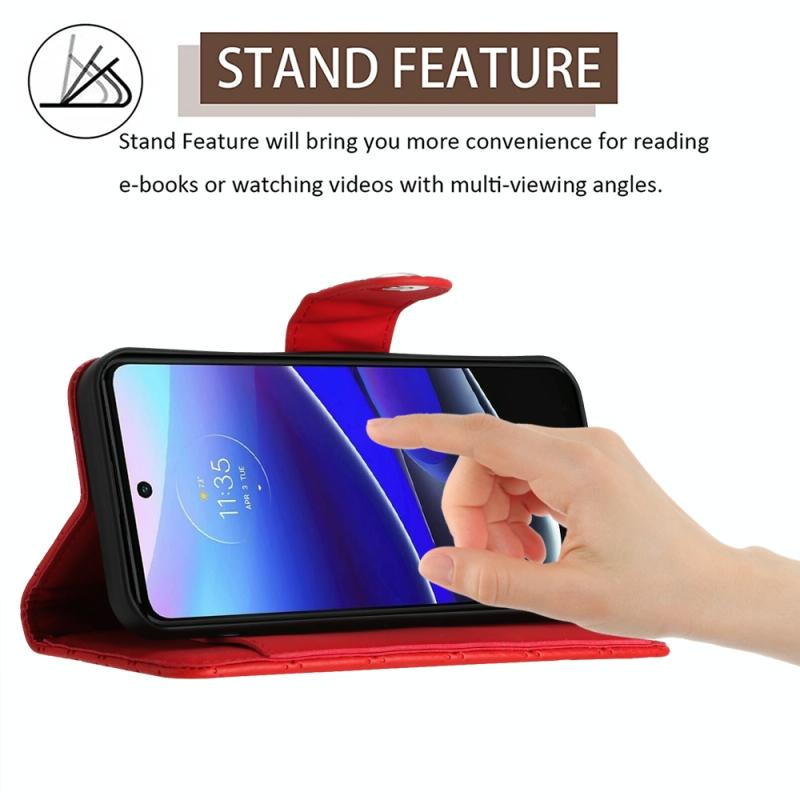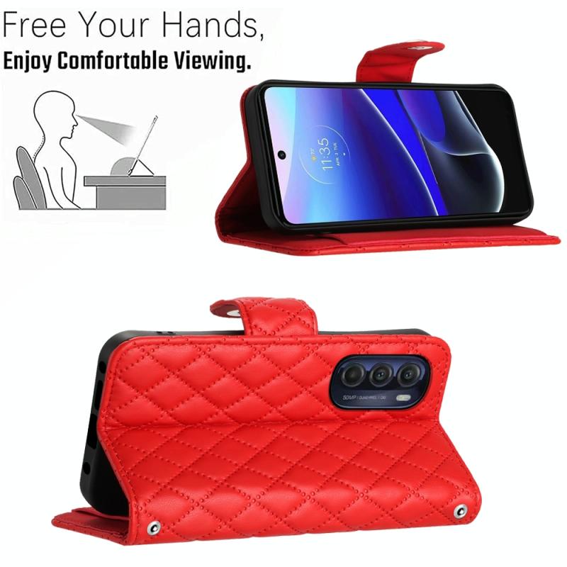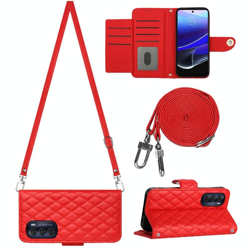 For Motorola Moto G Stylus 5G 2022 Rhombic Texture Flip Leather Phone Case with Long Lanyard(Red)