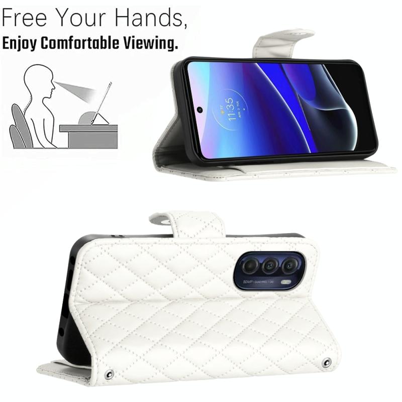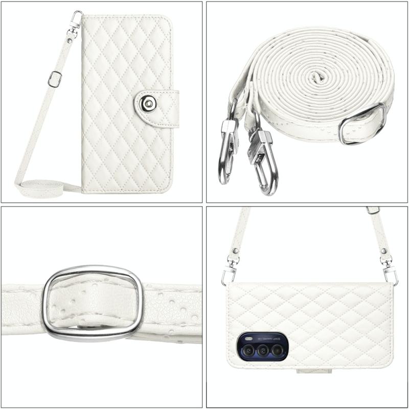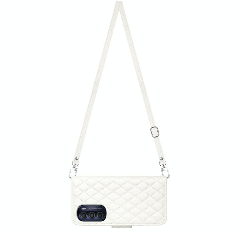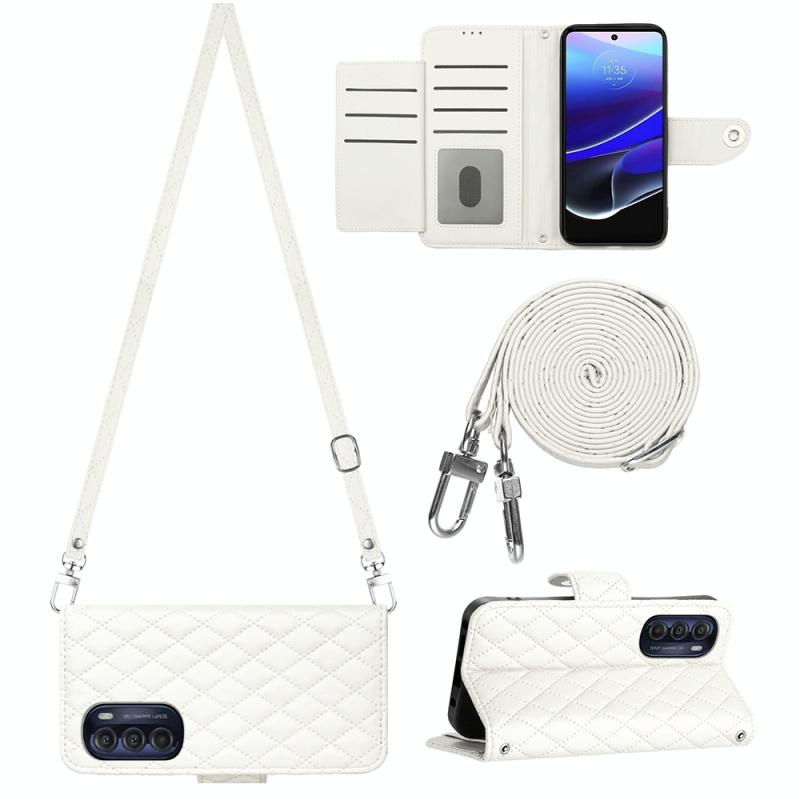 For Motorola Moto G Stylus 5G 2022 Rhombic Texture Flip Leather Phone Case with Long Lanyard(White)