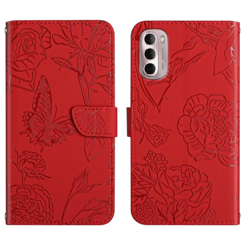Για Motorola Moto G Stylus 5G 2022 Skin Feel Πεταλούδα Peony ανάγλυφη δερμάτινη θήκη τηλεφώνου (κόκκινο)