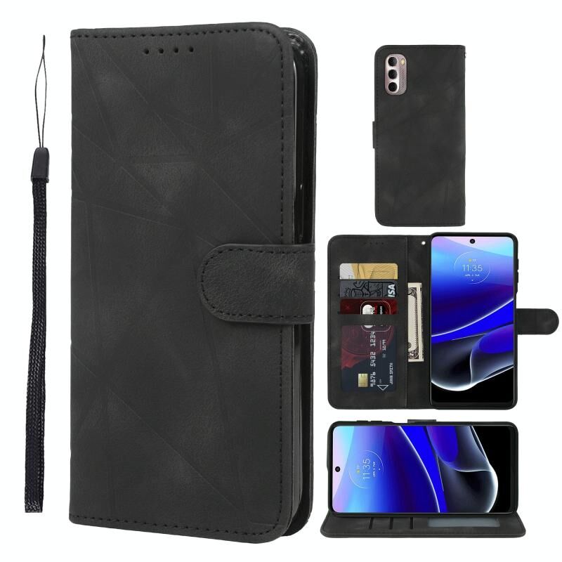 Για Motorola Moto G Stylus 5G 2022 Skin Feel Geometric Lines Leather Phone Case (Μαύρο)