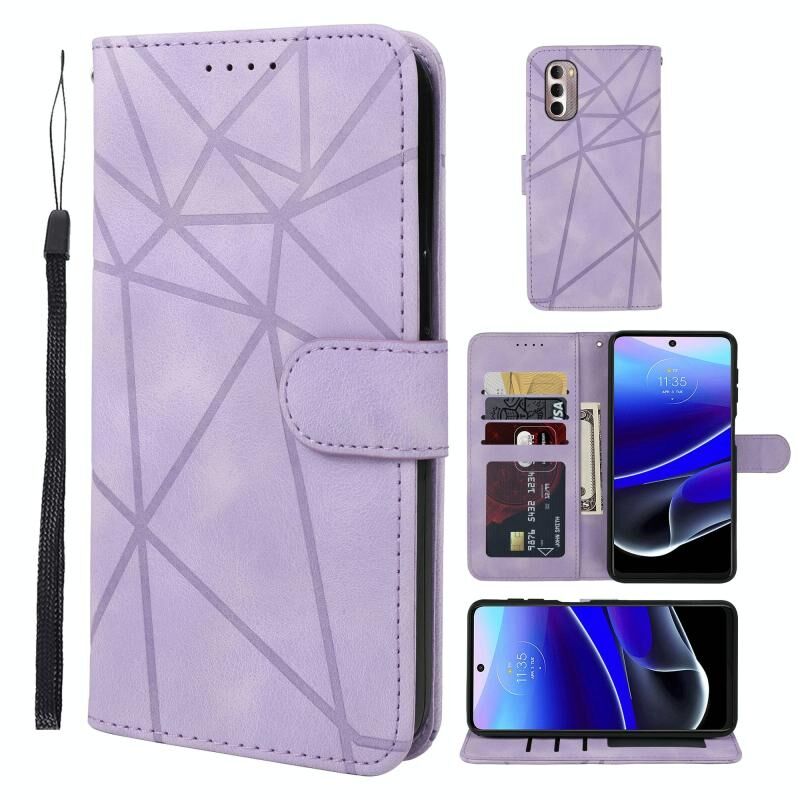 Για Motorola Moto G Stylus 5G 2022 Skin Feel Geometric Lines Leather Phone Case (Purple)