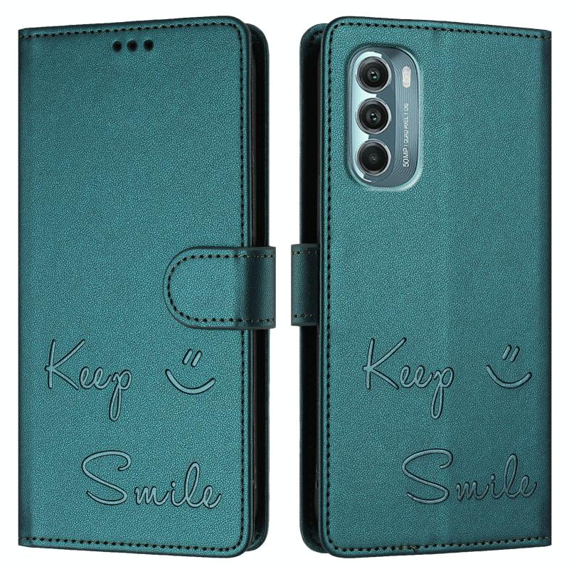 For Motorola Moto G Stylus 5G 2022 Smile Embossing RFID Leather Phone Case(Peacock Green)