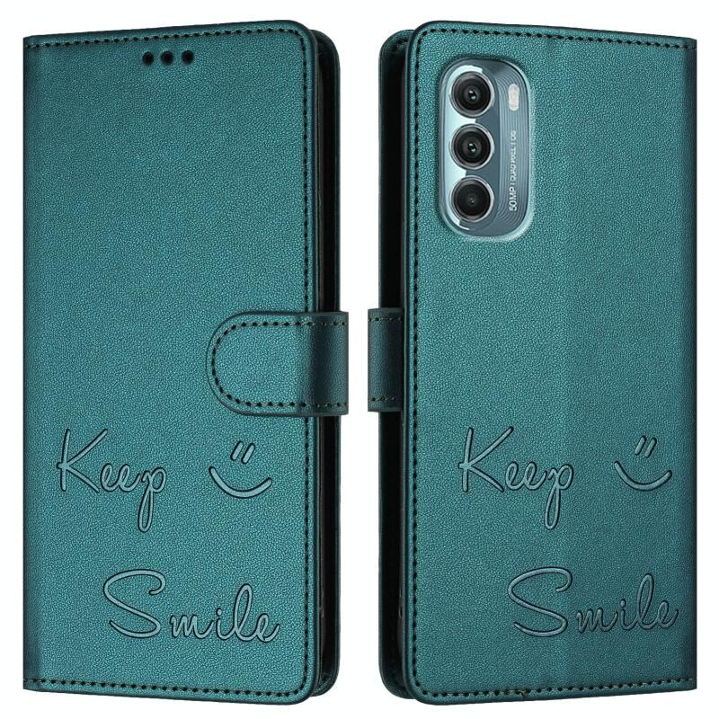 Θήκη τηλεφώνου από δέρμα με ανάγλυφο χαμόγελο και RFID για Motorola Moto G Stylus 5G 2022 (Πράσινο Παγωνιού)