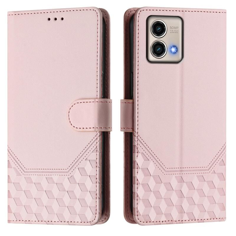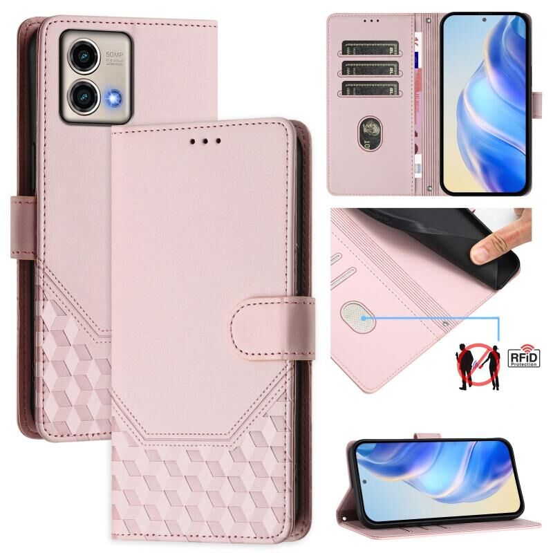 Για Motorola Moto G Stylus 5G 2023 Honeycomb ανάγλυφη RFID δερμάτινη θήκη τηλεφώνου (ροζ)