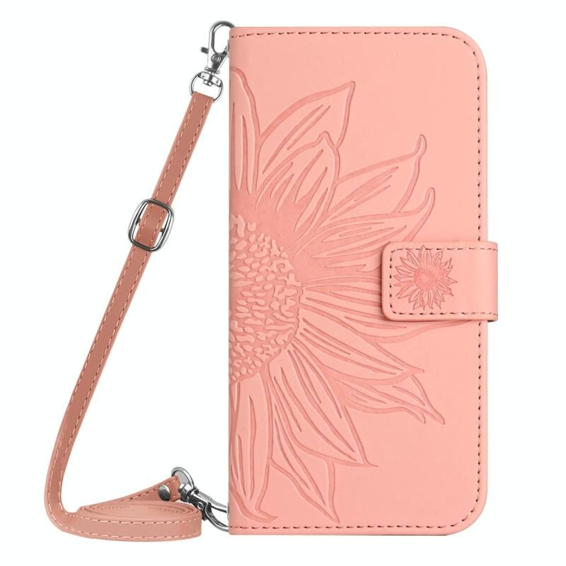 Για το Motorola Moto G Stylus 5G 2023 HT04 Skin Feel Sun Flower ανάγλυφο Flip δερμάτινη θήκη τηλεφώνου με κορδόνι (ροζ)