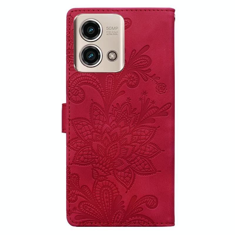 Θήκη τηλεφώνου από δερματίνη PU με μαγνητικό κούμπωμα, ανάγλυφο λουλουδάτο δαντελένιο σχέδιο και λουρί καρπού για Motorola Moto G Stylus 5G 2023 (Πράσινο)