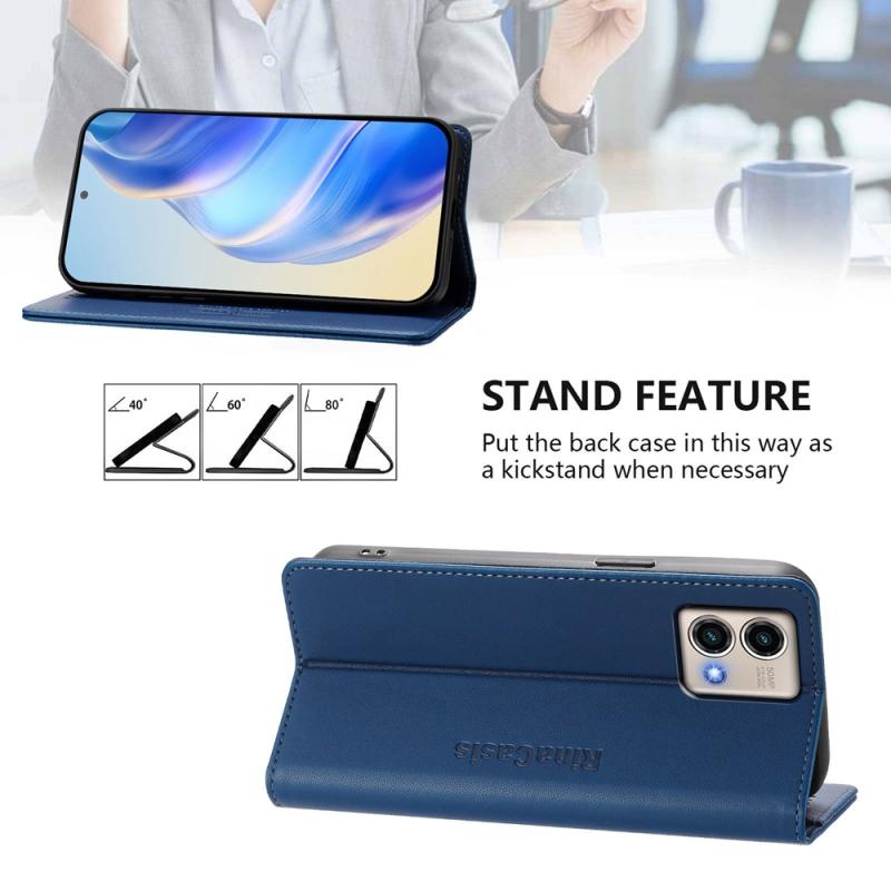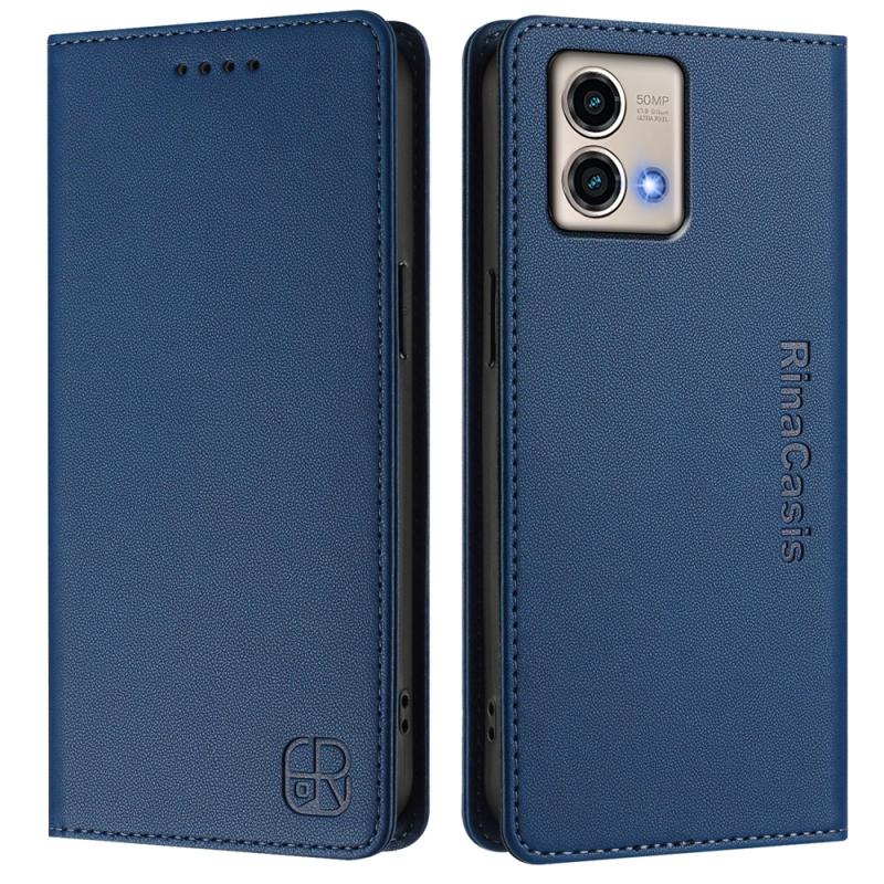 For Motorola Moto G Stylus 5G 2023 RC01 Dual-Folded Magnetic Suction RFID Leather Phone Case(Dark Blue)