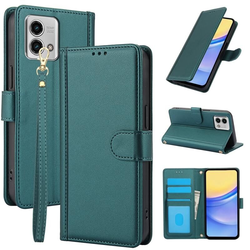 Για Motorola Moto G Stylus 5G 2023 Skin Feel Pure Color Card Slots Δερμάτινη θήκη τηλεφώνου με διπλό κορδόνι (πράσινο)