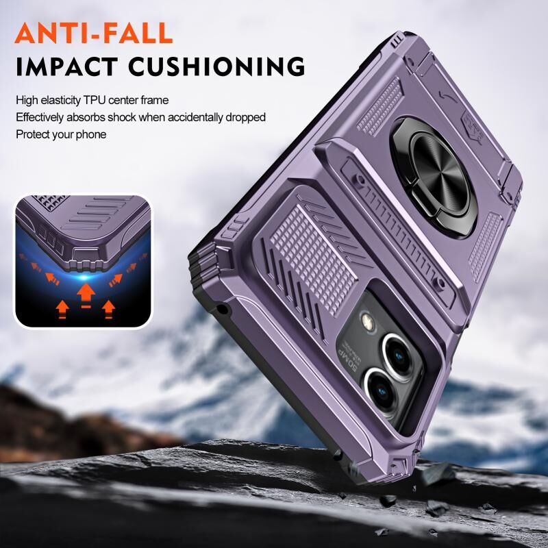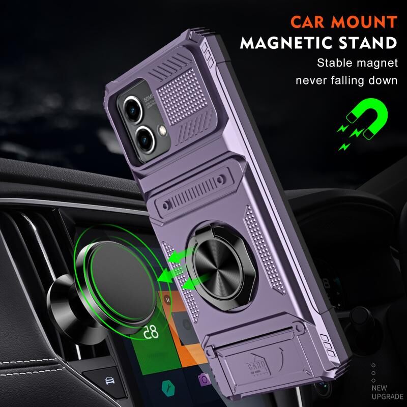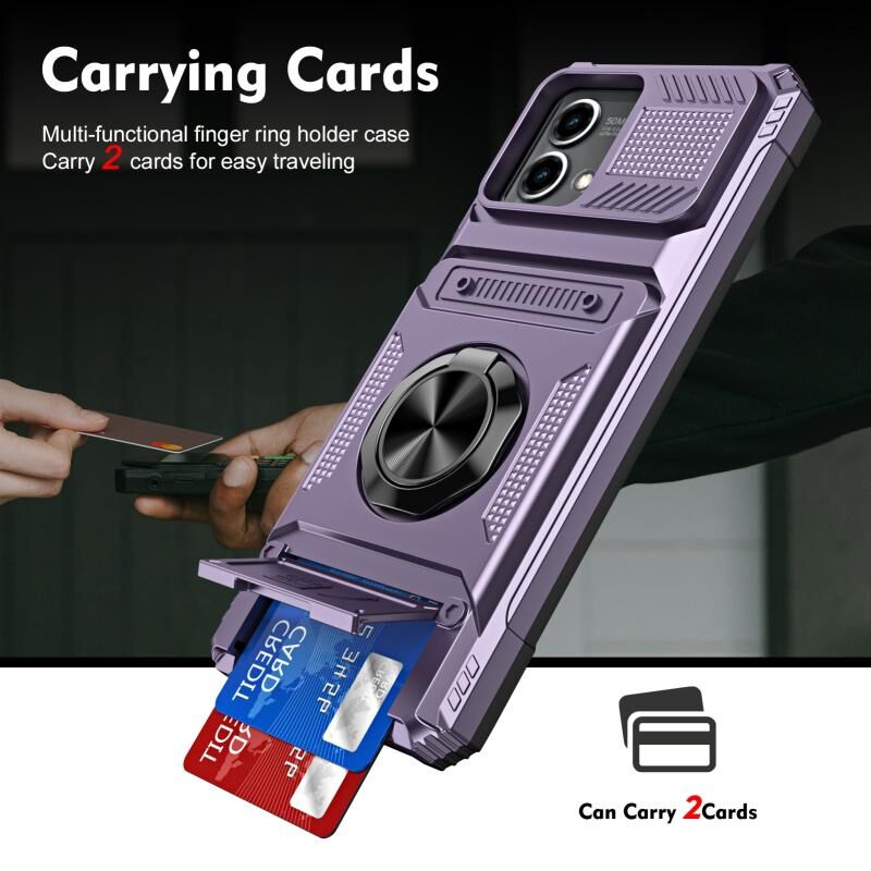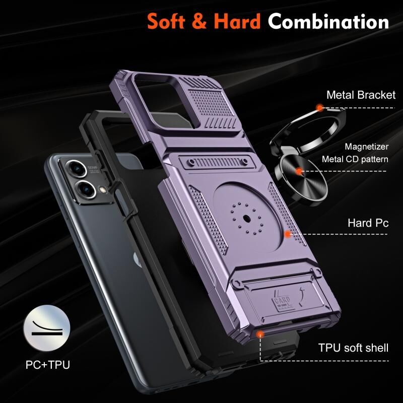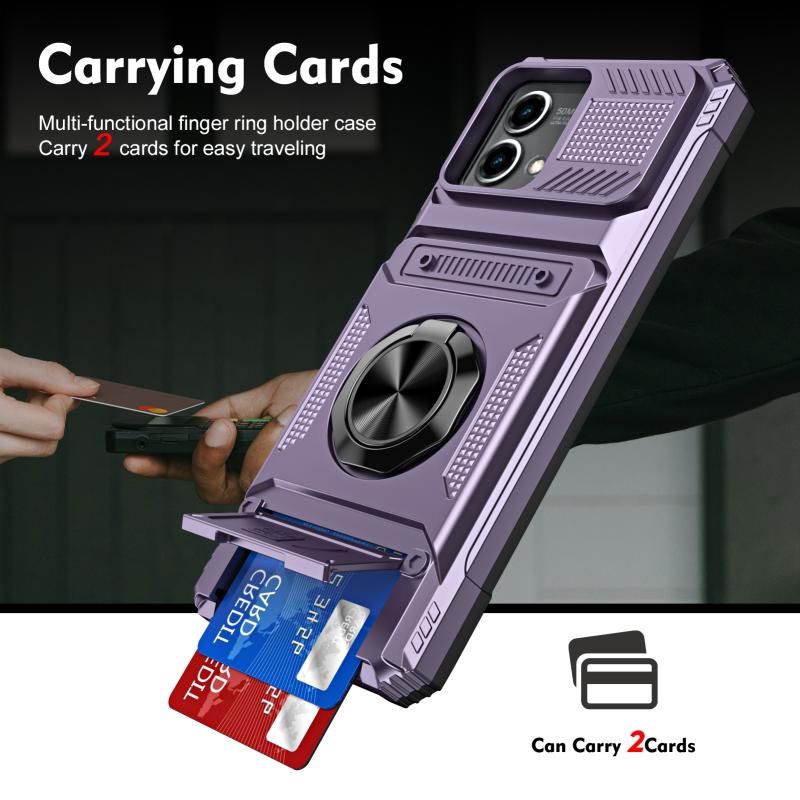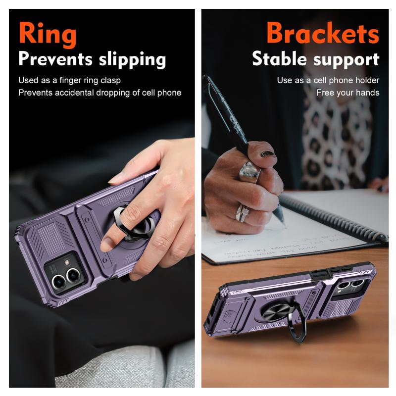 For Motorola Moto G Stylus 5G 2023 TPU+PC Shockproof Card Slot Phone Case with Metal Ring Holder(Purple)