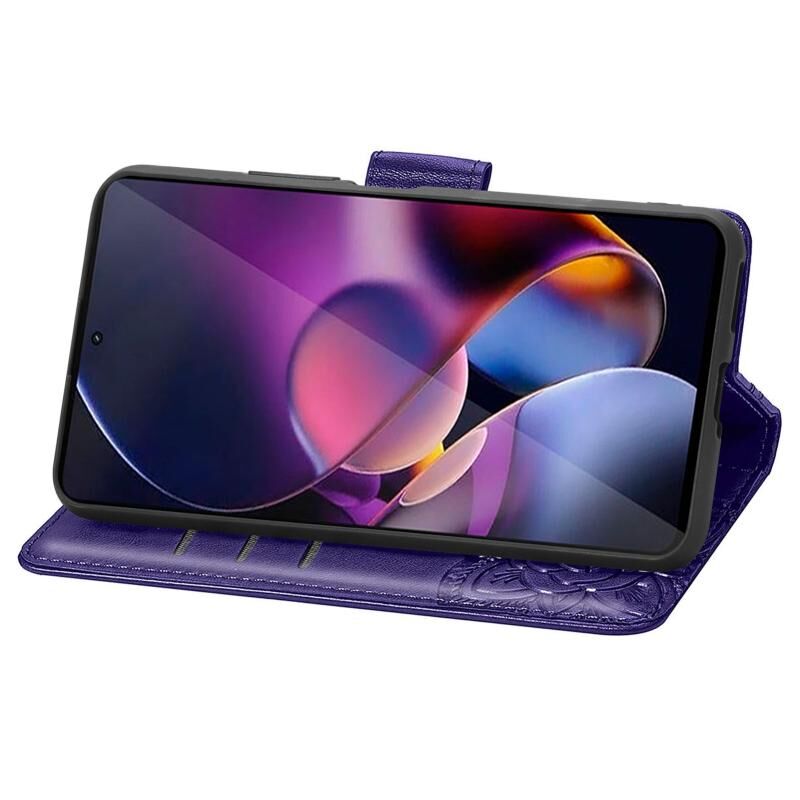 Θήκη τηλεφώνου δερμάτινη με ανάγλυφο σχέδιο πεταλούδας και λουλουδιών για Motorola Moto G Stylus 5G 2024 (Μαύρο)