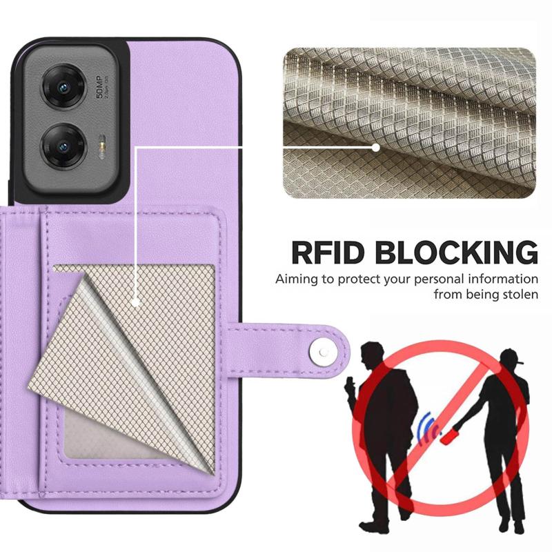 For Motorola Moto G Stylus 5G 2024 Button Card Bag RFID Anti-theft Phone Case(Purple)