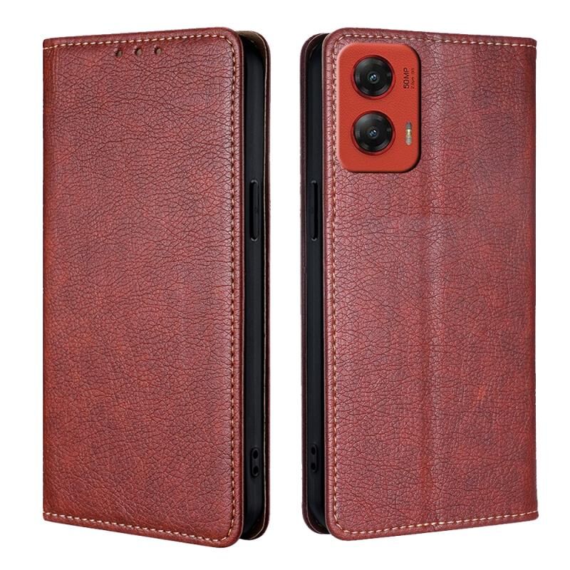 Για Motorola Moto G Stylus 5G 2024 γυαλιστερό λάδι στερεό χρώμα μαγνητική δερμάτινη θήκη τηλεφώνου (καφέ)