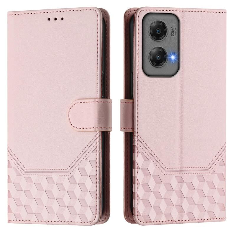 Για Motorola Moto G Stylus 5G 2024 Honeycomb ανάγλυφη RFID δερμάτινη θήκη τηλεφώνου (ρόζ)