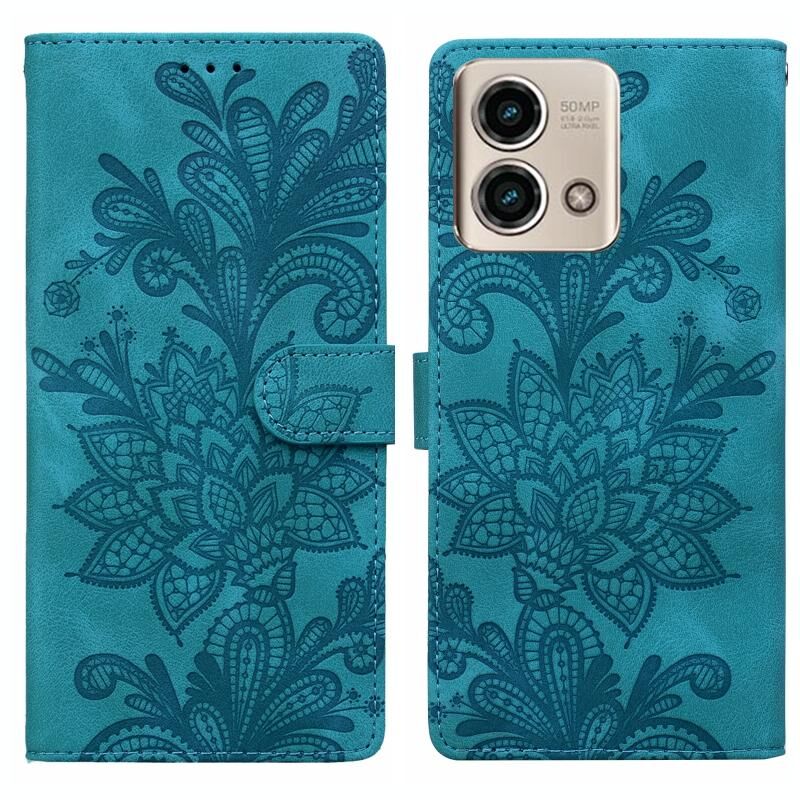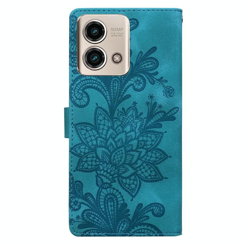 Θήκη τηλεφώνου για Motorola Moto G Stylus 5G 2024 από δερματίνη PU με μαγνητικό κούμπωμα, ανάγλυφο σχέδιο δαντέλας με λουλούδια και λουρί καρπού (Πράσινο)