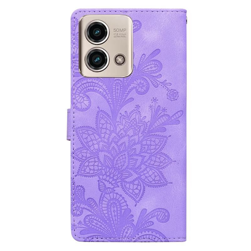 Θήκη τηλεφώνου για Motorola Moto G Stylus 5G 2024 από δερματίνη PU με μαγνητικό κούμπωμα, ανάγλυφο σχέδιο δαντέλας με λουλούδια και λουρί καρπού (Πράσινο)