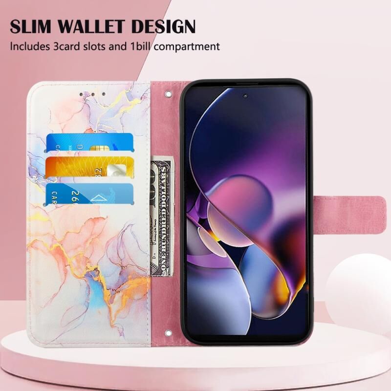 Θήκη τηλεφώνου από δέρμα με σχέδιο μαρμάρου για Motorola Moto G Stylus 5G 2024 PT003 (Χρυσό Ρόδι)