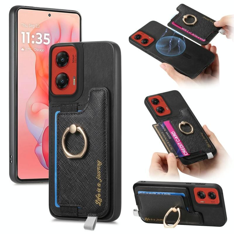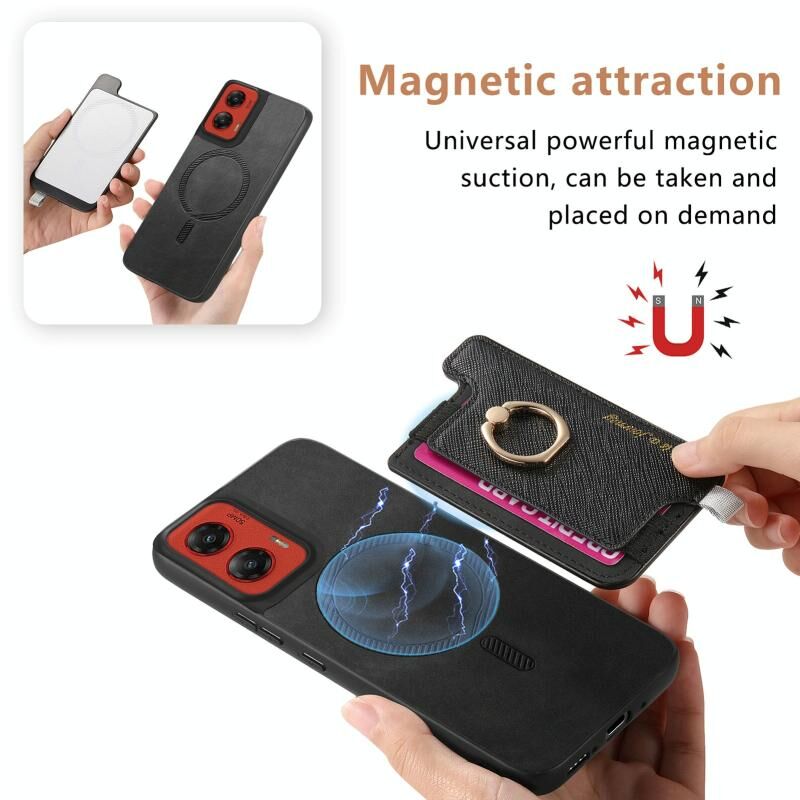 Για Motorola Moto G Stylus 5G 2024 Θήκη Δέρμα με Λαβή & Κάρτες MagSafe (Μαύρο)