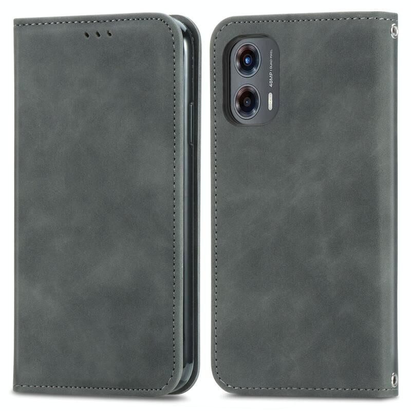 Για Motorola Moto G Stylus 5G 2024 Ρετρό δέρμα αίσθηση μαγνητική Flip δέρμα τηλέφωνο υπόθεση (γκρι)