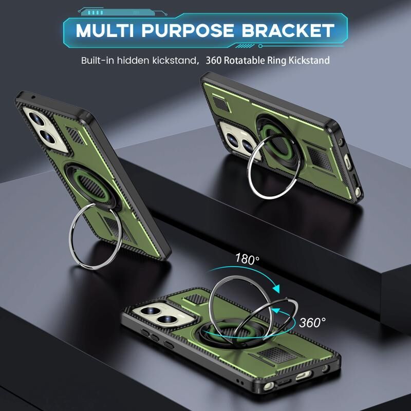 Για Motorola Moto G Stylus 5G 2024 Ring Holder Carbon Fiber PC υβριδικό TPU τηλέφωνο υπόθεση (Στρατού πράσινο)