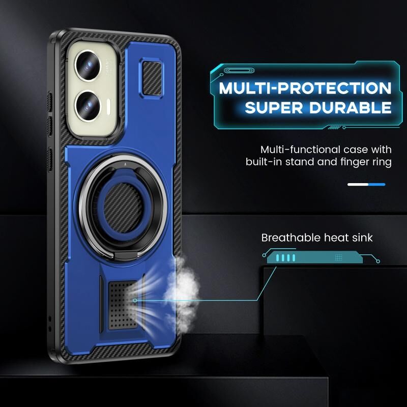 Για Motorola Moto G Stylus 5G 2024 Ring Holder Carbon Fiber PC Hybrid TPU υπόθεση τηλεφώνου (μπλε)