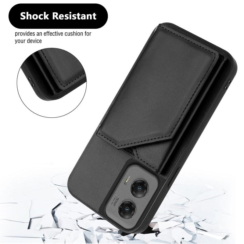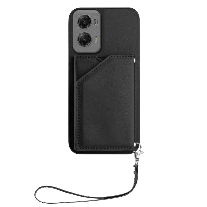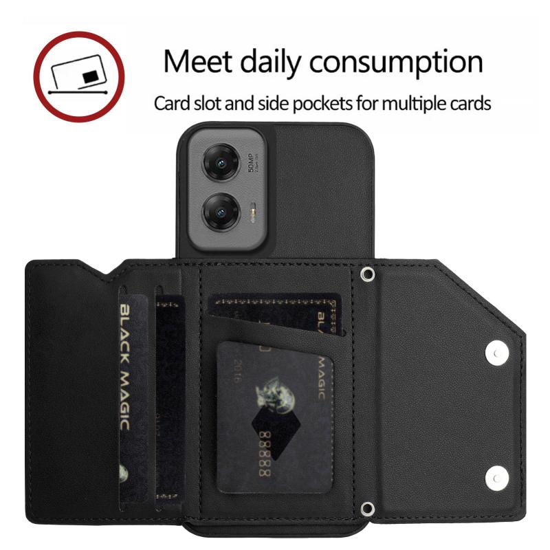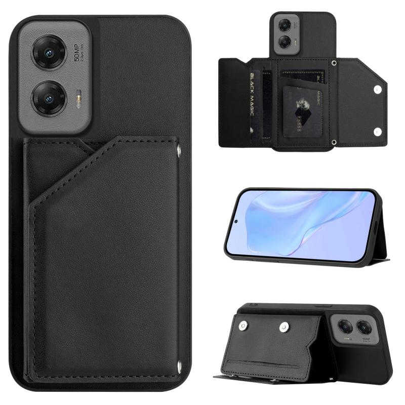 For Motorola Moto G Stylus 5G 2024 Skin Feel Four Card Slots Phone Case with Wrist Strap(Black)