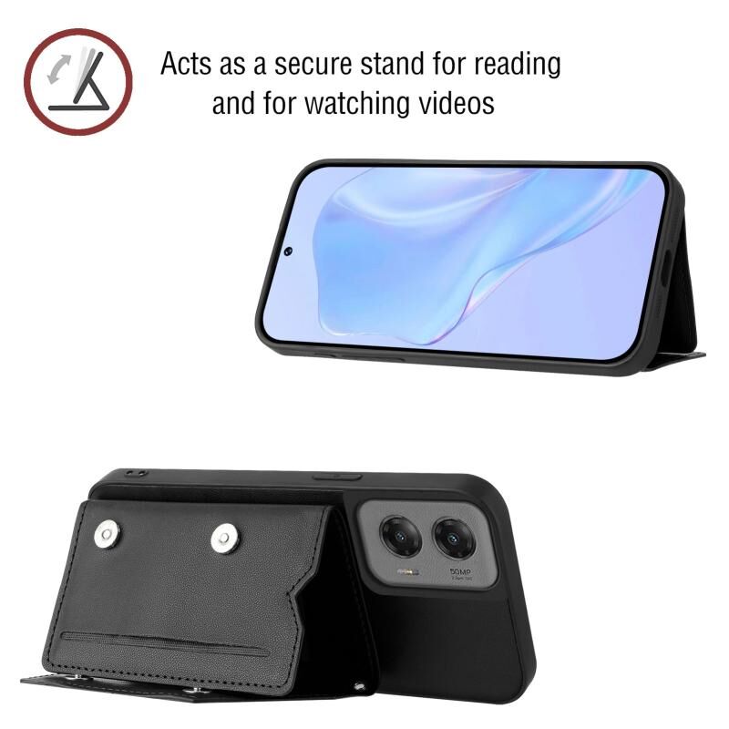 Θήκη τηλεφώνου για Motorola Moto G Stylus 5G 2024 με αίσθηση δέρματος, τέσσερις θήκες για κάρτες και λουρί καρπού (Μαύρο)