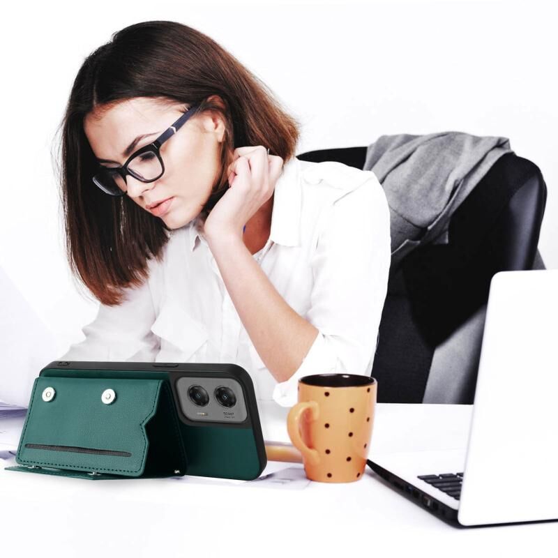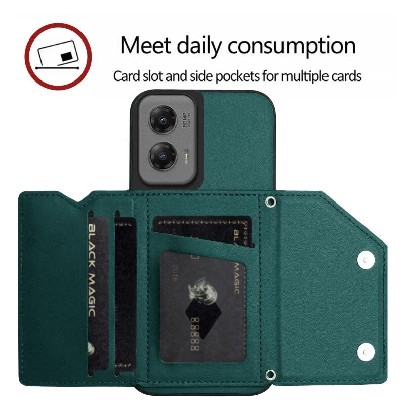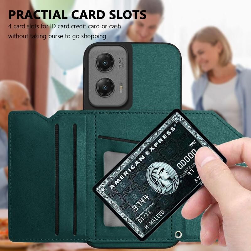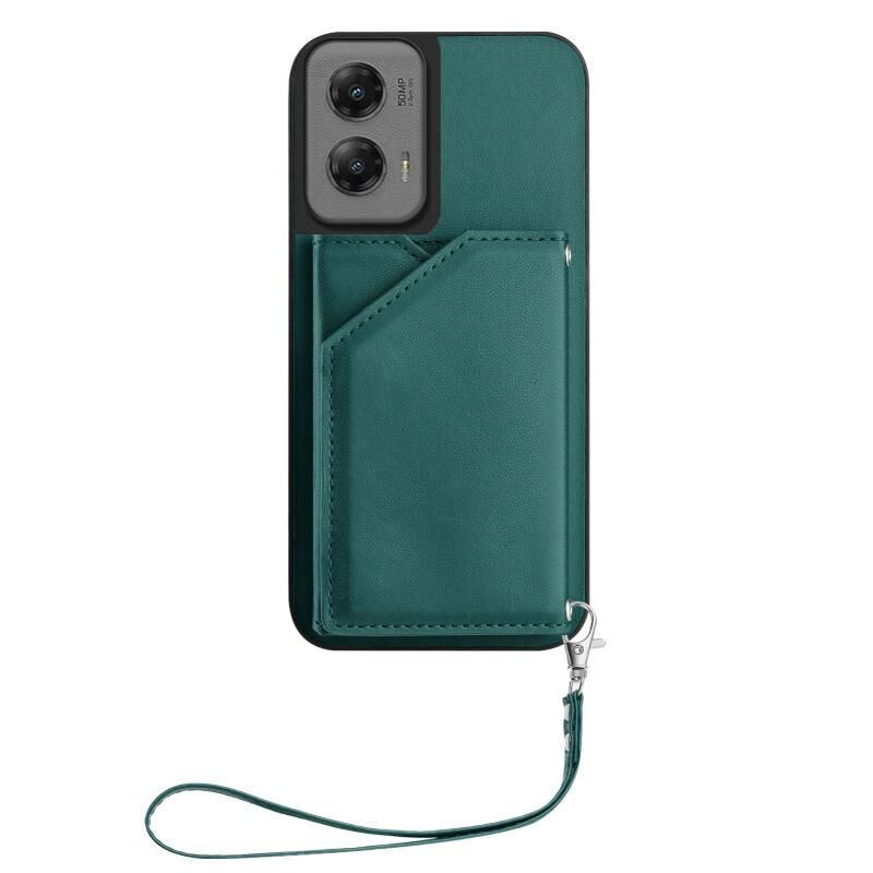 Θήκη τηλεφώνου για Motorola Moto G Stylus 5G 2024 με αίσθηση δέρματος, τέσσερις θήκες για κάρτες και λουρί καρπού (πράσινο)