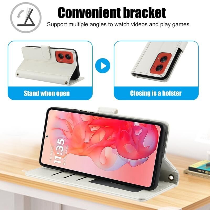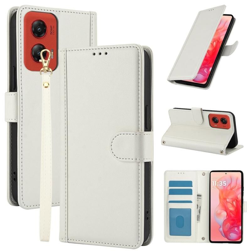 Για Motorola Moto G Stylus 5G 2024 Skin Feel Pure Color Card Slots Δερμάτινη θήκη τηλεφώνου με διπλό κορδόνι (Λευκό)