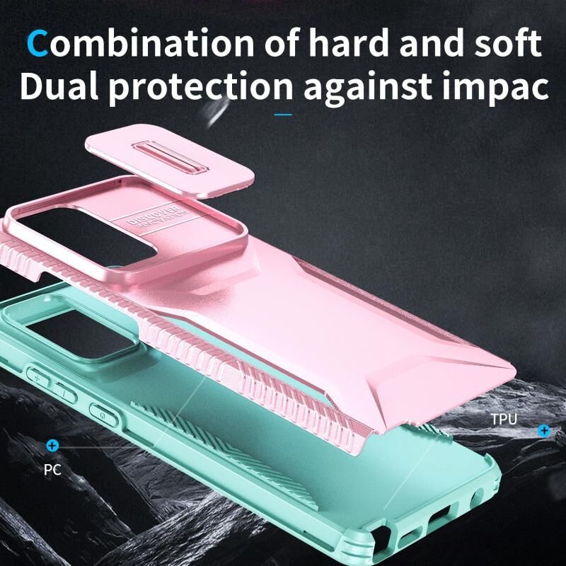 Για Motorola Moto G Stylus 5G 2024 Συρόμενη θήκη τηλεφώνου Camshield (ροζ + γκρι-πράσινο)