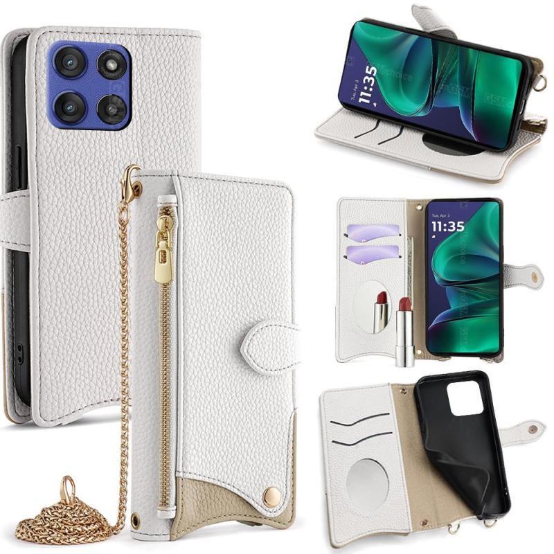For Motorola Moto G Stylus 5G 2025 Crossbody Chain Fishtail Litchi Leather Phone Case(White)