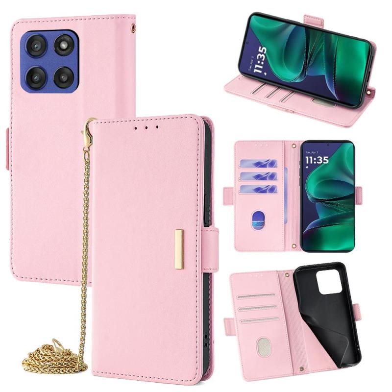 For Motorola Moto G Stylus 5G 2025 Crossbody Chain Leather Phone Case(Pink)