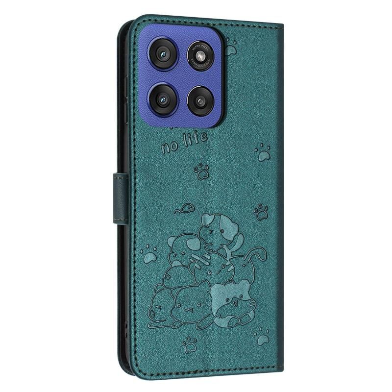 Θήκη τηλεφώνου δερμάτινη με ανάγλυφο γατάκι και λουρί για Motorola Moto G Stylus 5G 2025 (Μωβ)