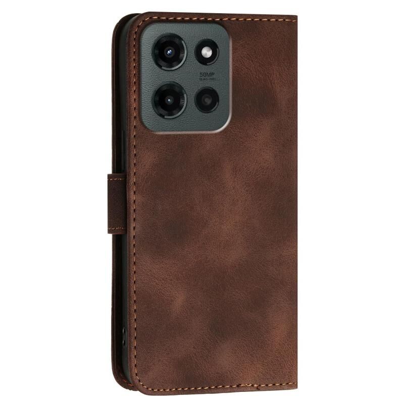 Θήκη κινητού τηλεφώνου δερμάτινη με ανάγλυφο σχέδιο πλέγματος και πεταλούδας για Motorola Moto G Stylus 5G 2025 με κορδόνι (Καφέ)