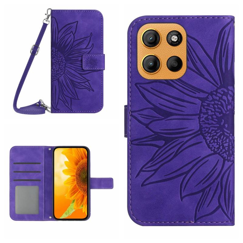 For Motorola Moto G Stylus 5G 2025 HT04 Skin Feel Sun Flower Embossed Flip Leather Phone Case with Lanyard(Dark Purple)