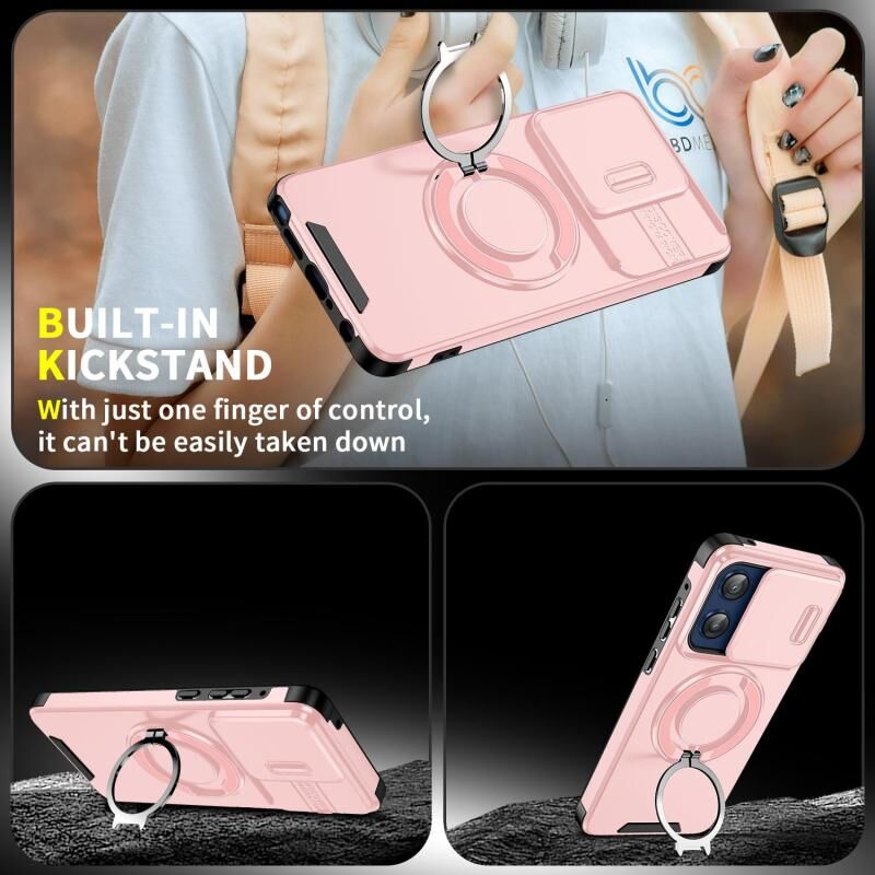 Θήκη τηλεφώνου για Motorola Moto G Stylus 5G 2025 με συρόμενο προστατευτικό κάμερας και δακτύλιο στήριξης (Μωβ)