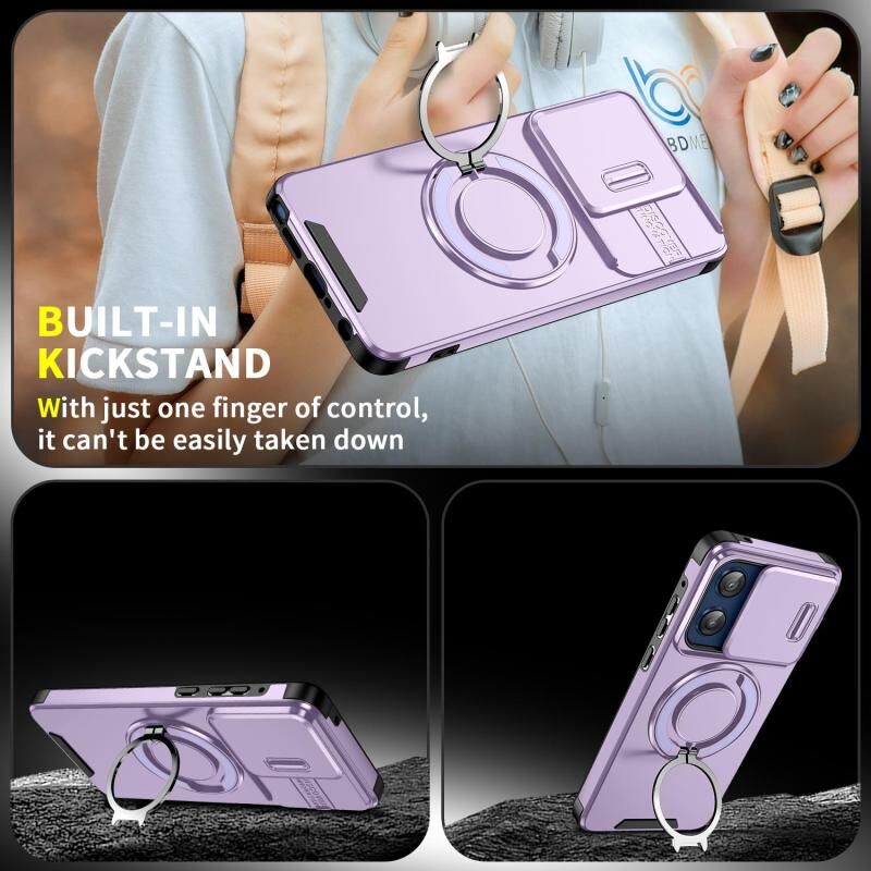 Θήκη τηλεφώνου για Motorola Moto G Stylus 5G 2025 με συρόμενο προστατευτικό κάμερας και δακτύλιο στήριξης (Μωβ)