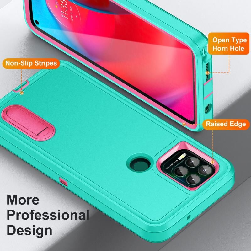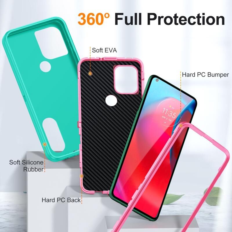 Για Motorola Moto G Stylus 5G ανθεκτική θήκη τηλεφώνου PC + σιλικόνης με θήκη (ανοιχτό πράσινο + ροζ κόκκινο)
