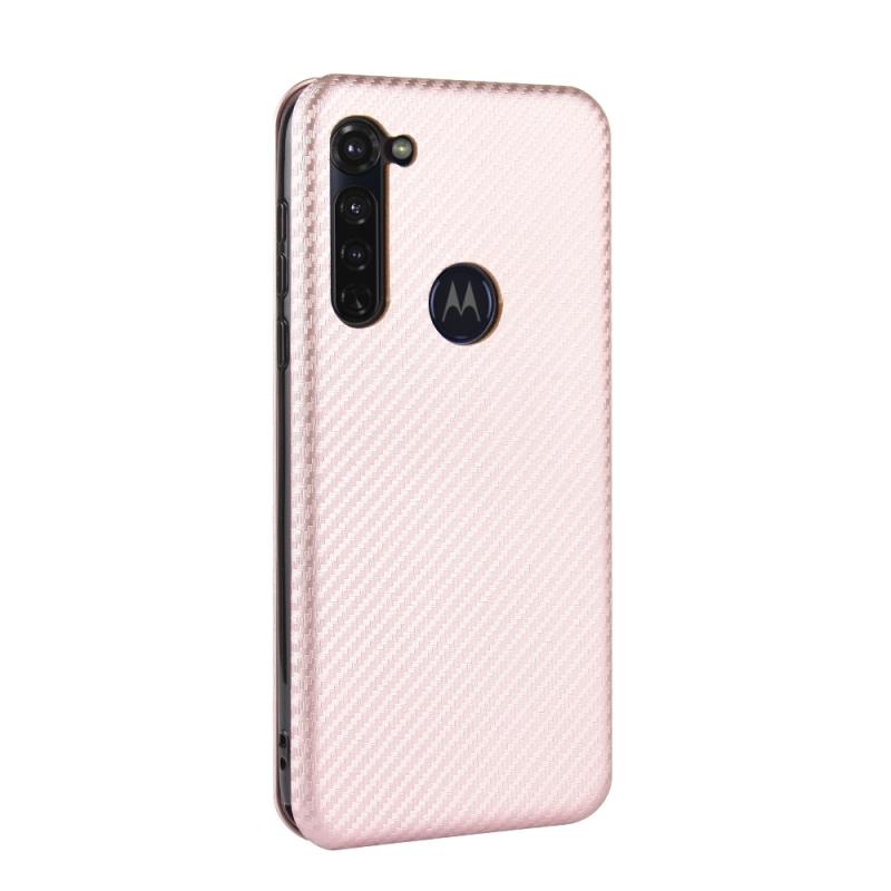 For Motorola Moto G Stylus Carbon Fiber Texture Horizontal Flip TPU + PC + PU Leather Case with Rope & Card Slot(Pink)