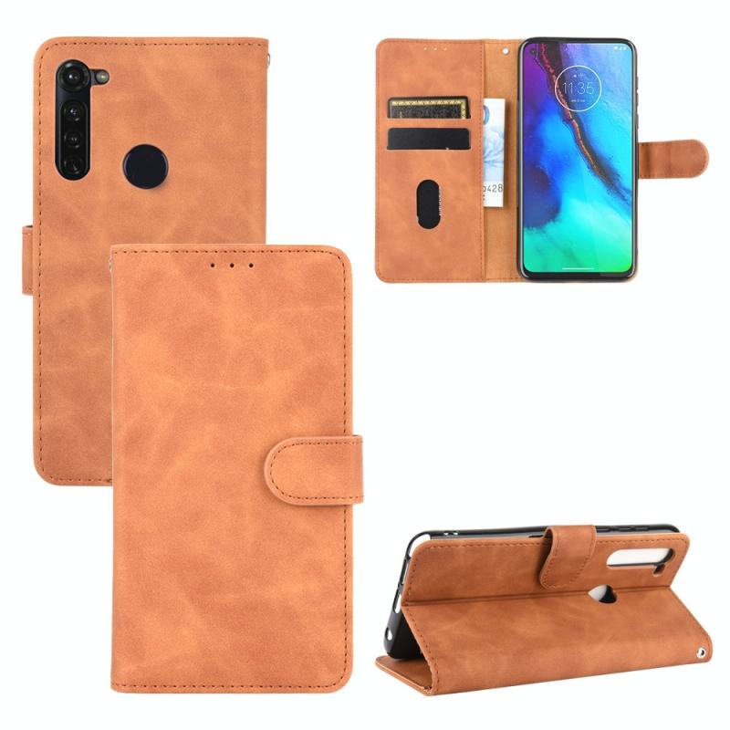 For Motorola Moto G Stylus / G Pro Solid Color Skin Feel Magnetic Buckle Horizontal Flip Calf Texture PU Leather Case with Holder & Card Slots & Wallet(Brown)